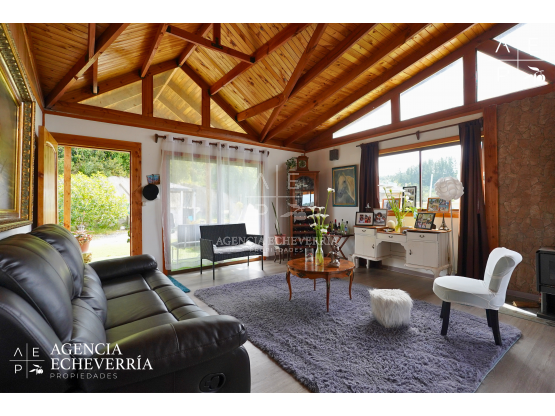 La propiedad cuenta con una casa principal de 3 dormitorios, un departamento independiente ideal para visitas o arriendo, piscina privada de 6x3 m, amplio quincho cerrado de 38 m² con baño, terraza con vista panorámica, casita del árbol y más de 5 estacionamientos.